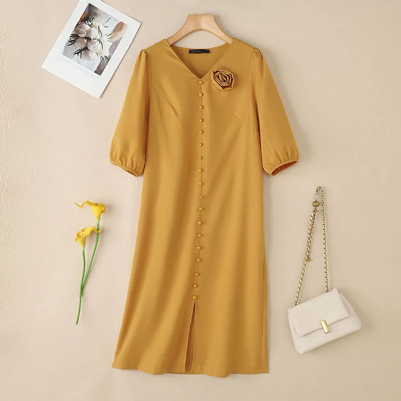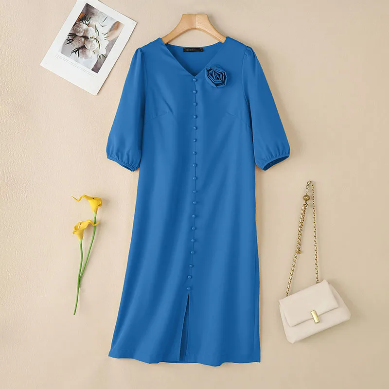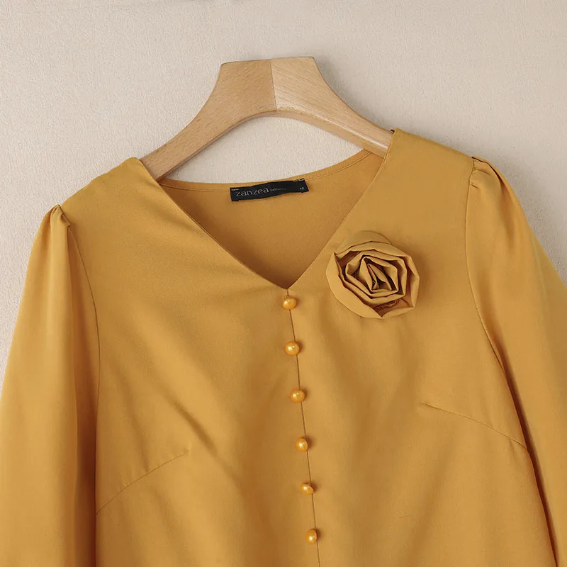 Elegant Women Work OL Sundress ZANZEA 2025 New Summer Dress Fashin oV Neck Short Sleeve Party Vestidos Stylish 3D Flowers Dress