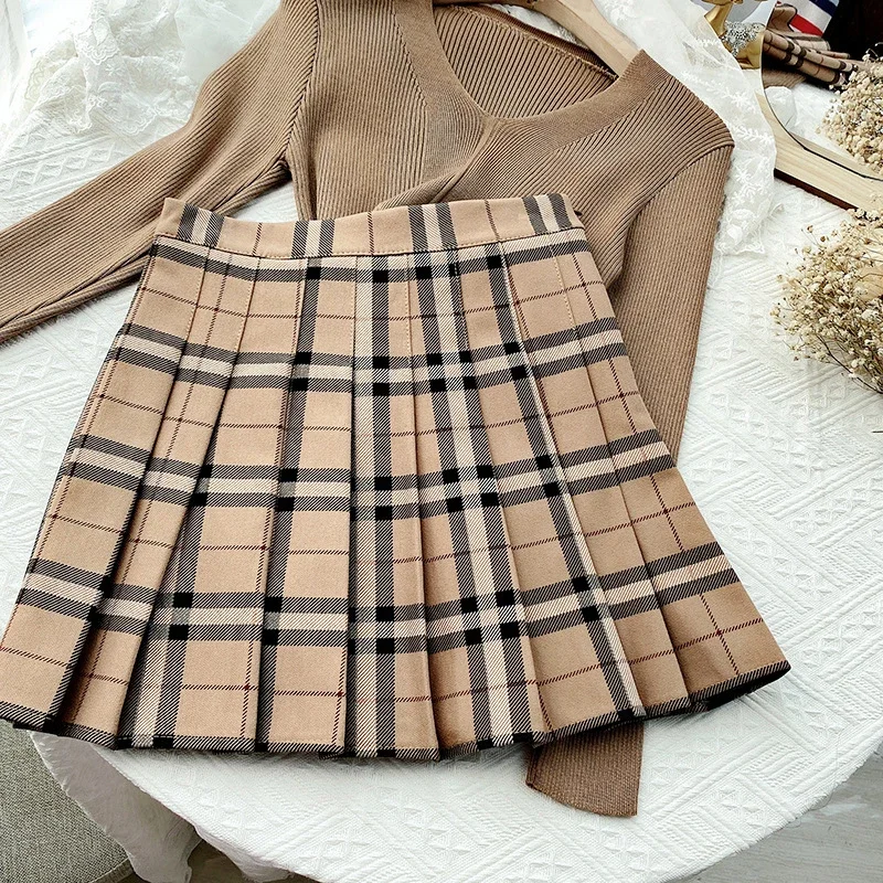 Plaid Stripes Skirt Women Korean High Waist Khaki All-Match Mini Skirt Sweet Girl Student Style Jk Uniform Pleated Skirt New