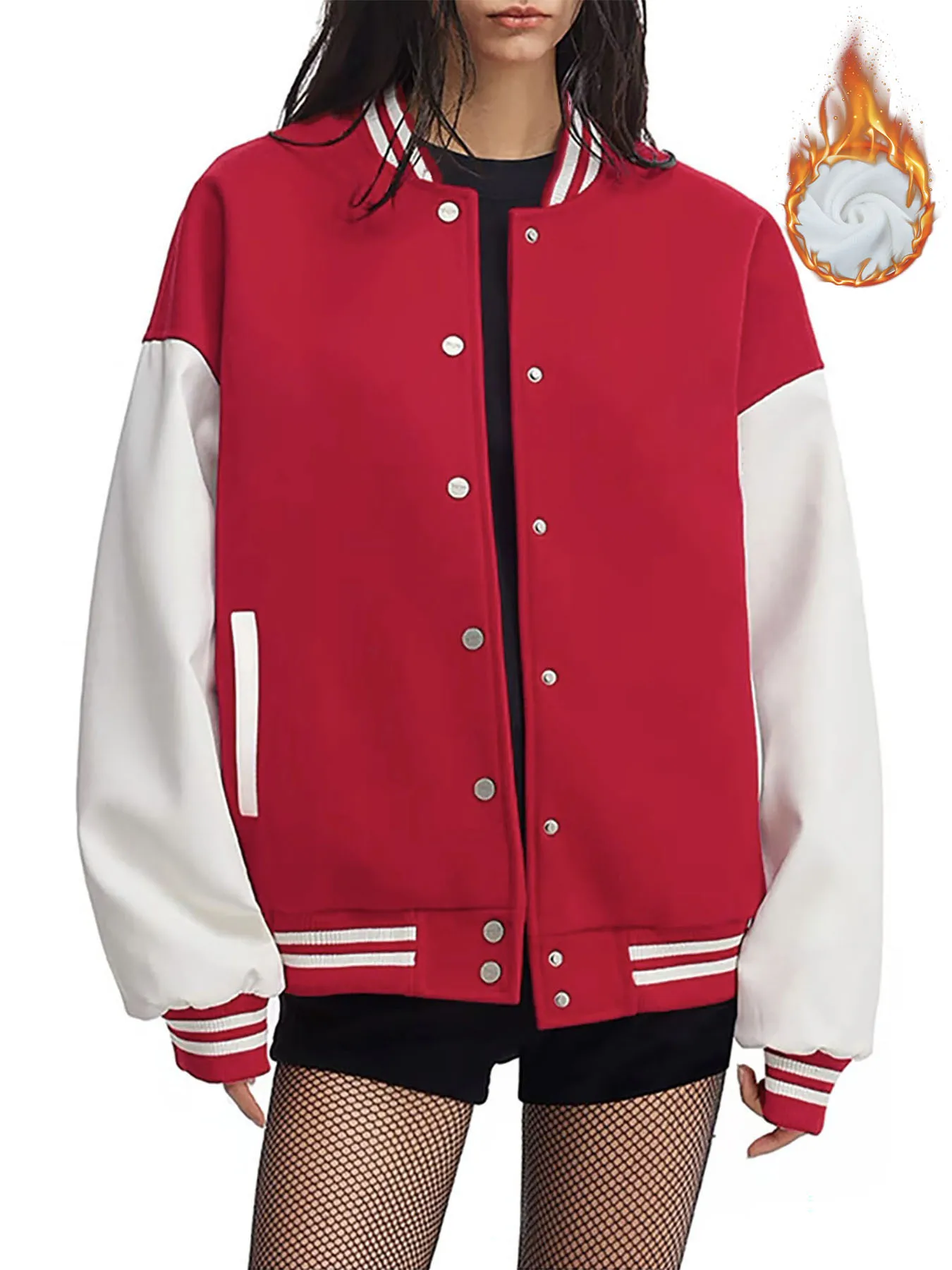 Velvet baseball jacket, American college style loose winter women's jacket